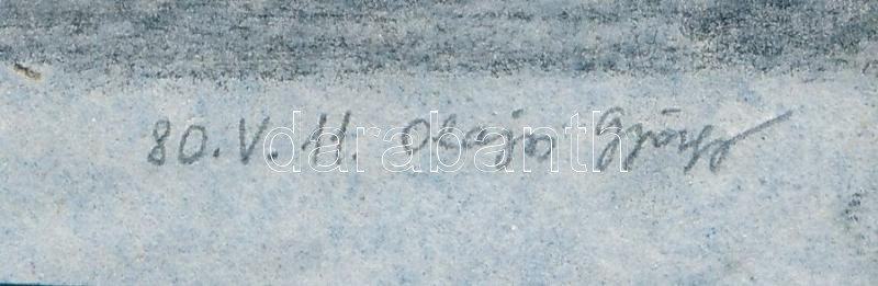 Olajos György (1953-): Le Sacre du printemps I., az ősök felidézése, 1980. Vegyes technika, papír, jelzett. Paszpartuban, 12×16 cm. Korai munka az életműből, gyűjtői darab!