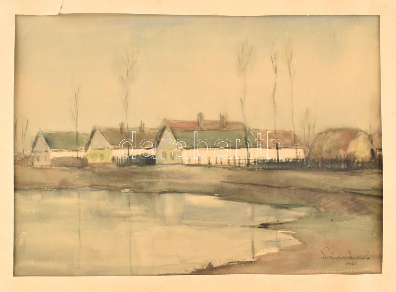 Sáros András (1912-1983): Faluvége, 1965. Akvarell, papír, jelzett. Pa... https://www.darabanth.com/hu/473-Gyorsarveres/473.0/Festmenyek-es-grafikak/Festmenyek-es-grafikak~500003/Saros-Andras-1912-1983-Faluvege-1965-Akvarell-papir-jelzett-Paszpartuban-23-5x33-cm~II3190270