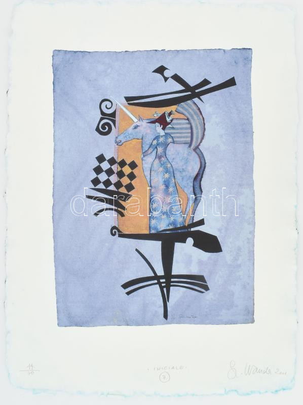 Leírás: Szyksznian Wanda (1948-): Iniciale 7, 2001. Computer print, merített papír, jelzett, számozott (14/70). 30,5x22 cm