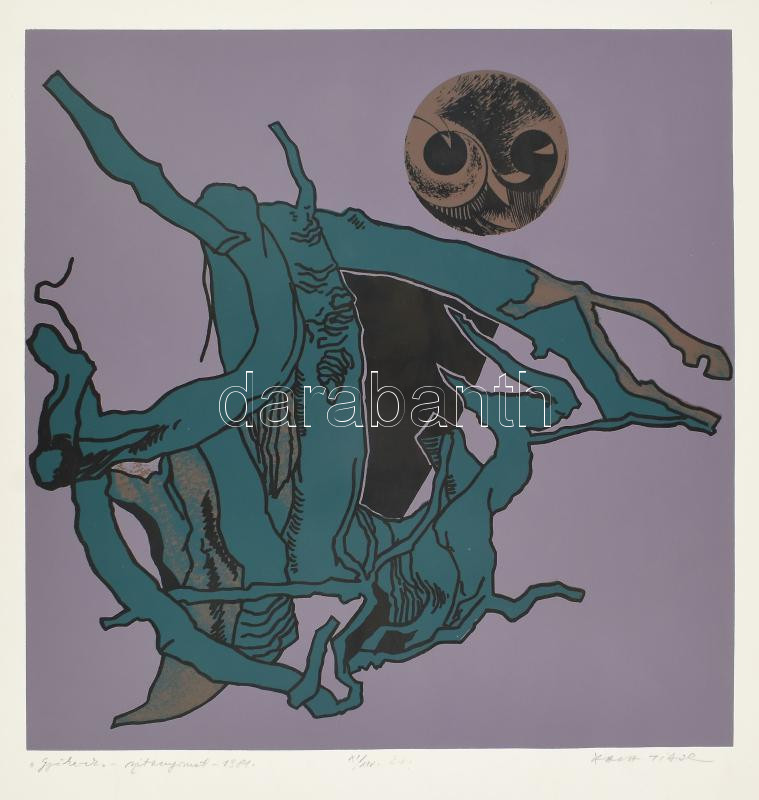 Leírás: Zala Tibor (1920-2004): "Gyökerek", 1981. Szitanyomat, papír. Jelzett. Művészpéldány E.A. XI/XIV számozással. Lapszéli apró sérülésekkel. 40x40 cm
