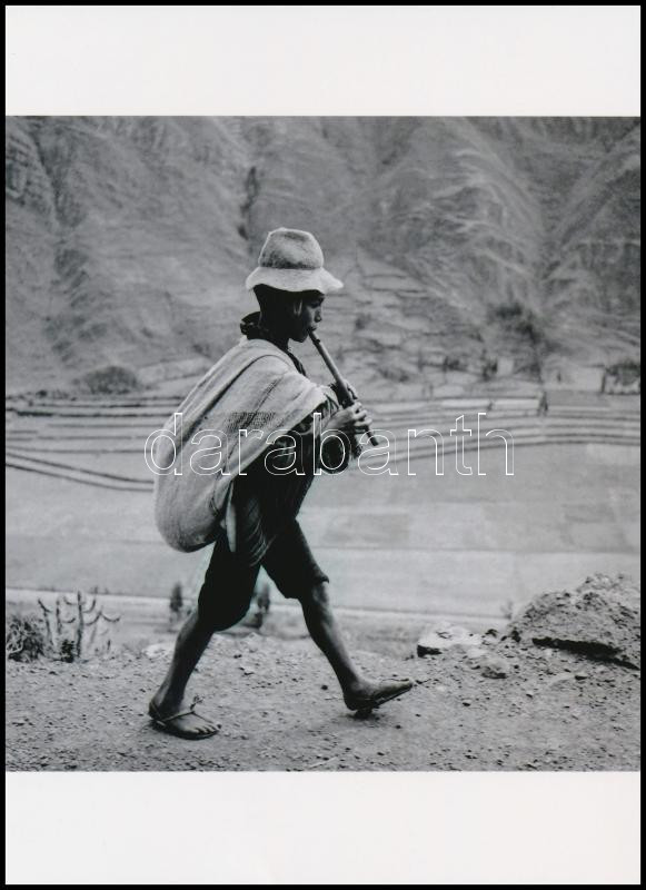 1954 Werner Bischof (1916-1954) svájci fotóriporter és fotóművész felvétele (Furulyázó, Peru, 1954), hÃrügynökségi fotó modern nagyÃtásban, a néhai Lapkiadó Vállalat fotóarchÃvumából, 21x15 cm