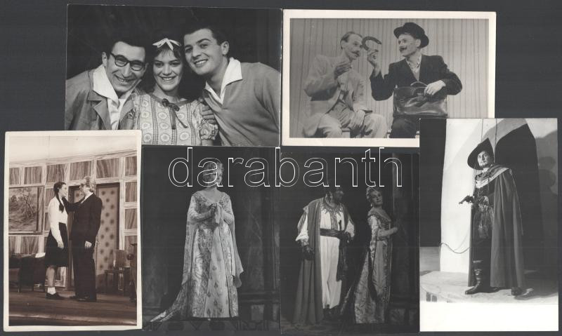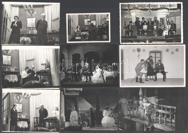Leírás: Jelenetek magyar filmekből és színdarabokból, 15 db fotó, közte 2 db pecséttel jelzett (egyik Keleti Éva), 6×9 és 9×14 cm közötti méretekben