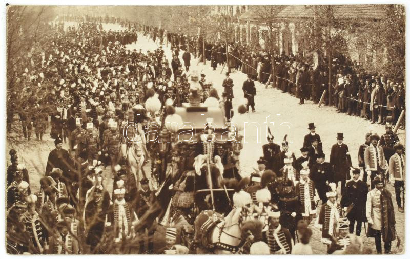 Leírás: Késmárk, 1906, Thököly Imre hamvait szállító menet. Megírt fotólap, 8,5x14 cm