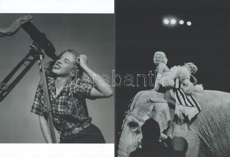 Marilyn Monroe (korábban Norma Jeane) (1926-1962) amerikai színésznő, fotómodell, énekes két felvételen (Elefántháton és távcsővel), eltérő időben készült felvételek, 2 db modern nagyítás, jelzés nélkül, 21x15 cm