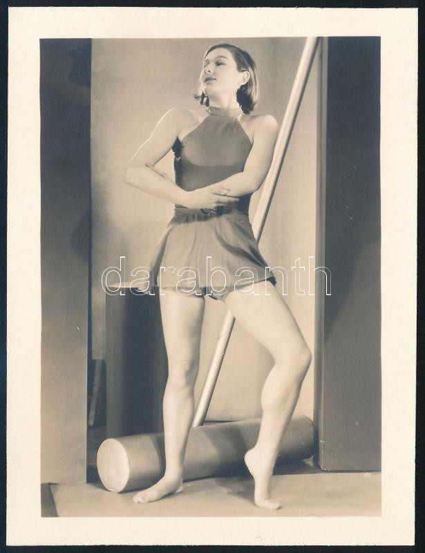 Leírás: Mozdulatművész hölgy műtermi portréja, jelzés nélkül, 16×12 cm