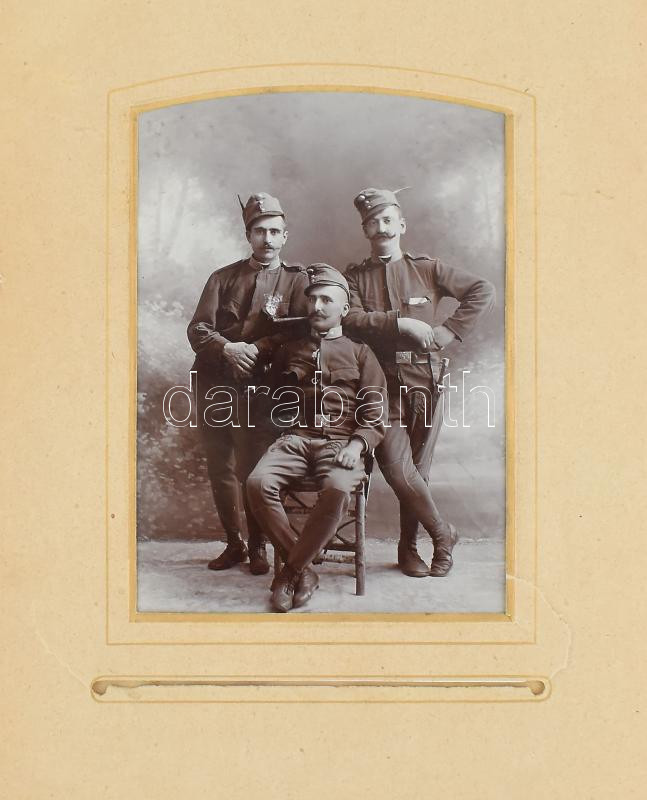 Régi széteső állapotú fotóalbum, nagyrészt erdélyi kötődésű fotókkal, de benne más itthoni műtermek munkáival is, néhány katonafotóval is. Kb. 50 fotó.