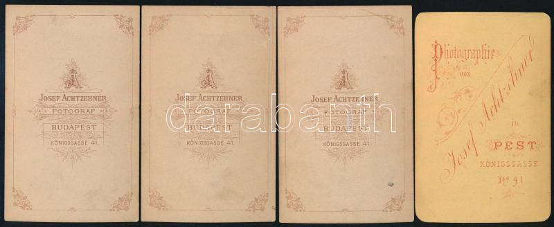Leírás: cca 1875-1880 Portrék, 4 db keményhátú fotó Josef Achtzehner budapesti műterméből, 10,5×6,5 cm