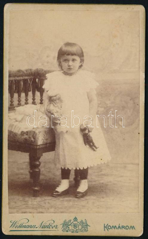 cca 1890-1900 Kislány babákkal, vizitkártya Wittmann Nándor komáromi m... https://www.darabanth.com/hu/473-Gyorsarveres/473.0/Fotomuveszet/Foto~500025/cca-1890-1900-Kislany-babakkal-vizitkartya-Wittmann-Nandor-komaromi-mutermebol-10-5x6-5-cm~II3209805