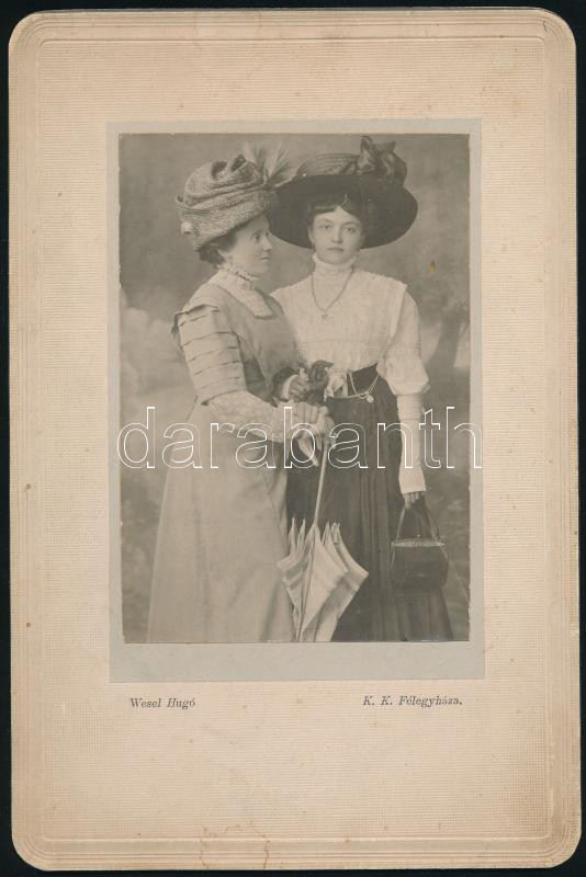 cca 1910 Hölgyek portréja, kartonra kasírozott fotó Wesel Hugó kiskunf... https://www.darabanth.com/hu/473-Gyorsarveres/473.0/Fotomuveszet/Foto~500025/cca-1910-Holgyek-portreja-kartonra-kasirozott-foto-Wesel-Hugo-kiskunfelegyhazai-mutermebo~II3207571