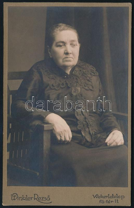 cca 1910 Idős hölgy portréja, keményhátú fotó Winkler Rezső wekerletel... https://www.darabanth.com/hu/473-Gyorsarveres/473.0/Fotomuveszet/Foto~500025/cca-1910-Idos-holgy-portreja-kemenyhatu-foto-Winkler-Rezso-wekerletelepi-mutermebol-16C3~II3204528