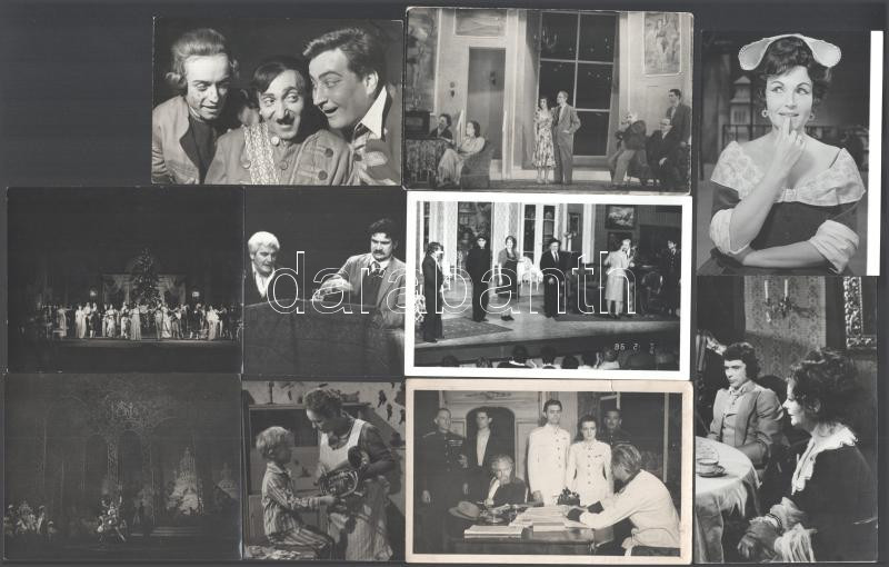 Leírás: cca 1950-1960 Jelenetek magyar filmekből és színdarabokból, 10 db fotó, közte 4 db jelzett, 9×12 cm