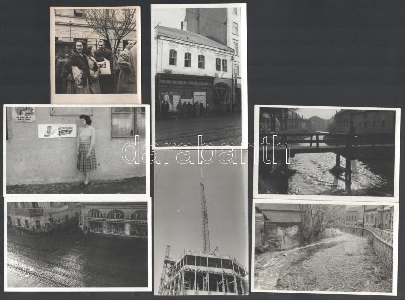 Leírás: cca 1955 Miskolci városképek, életképek, felvonulások. Szentkereszti Béla jelzetlen felvételei 7 db 9x12 cm