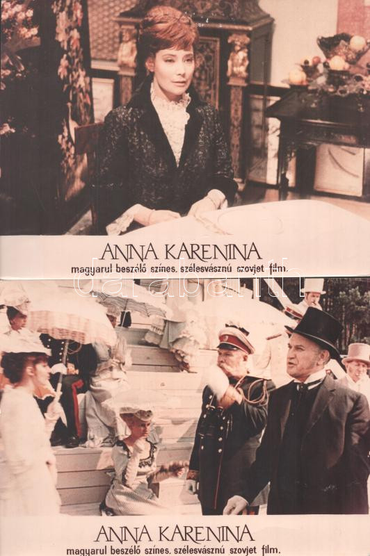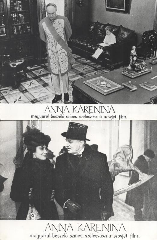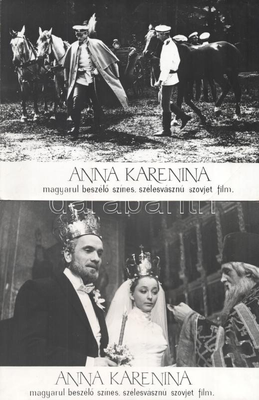 cca 1989 előtt készült, ,,Anna Karenina" című szovjet film jelenetei és szereplői, 17 db vintage produkciós filmfotó (vitrinfotó, lobbyfotó) ezüst zselatinos fotópapíron, a használatból eredő (esetleges) kisebb hibákkal, 18x24 cm