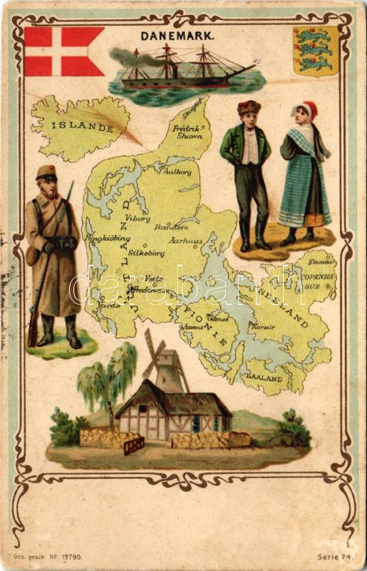 Danemark. Ges. gesch. No. 19790. Serie 74. / Denmark. Art Nouveau lith... https://www.darabanth.com/hu/473-Gyorsarveres/473.0/Kepeslapok/Dania~2000078/Danemark-Ges-gesch-No-19790-Serie-74-Denmark-Art-Nouveau-litho-with-map-flag-and-coat-of-a~II3205788