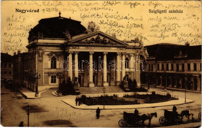 1906 Nagyvárad, Oradea; Szigligeti színház / theatre (EK) https://www.darabanth.com/hu/473-Gyorsarveres/473.0/Kepeslapok/Erdely~2000007/1906-Nagyvarad-Oradea-Szigligeti-szinhaz-theatre-EK~II3205172