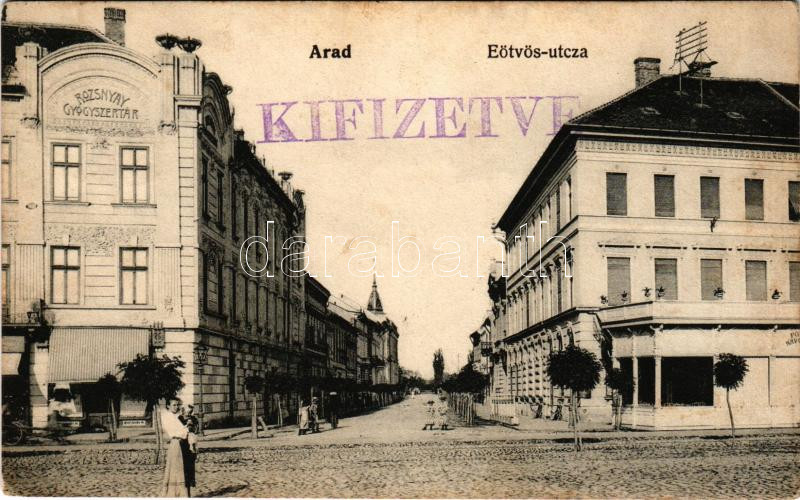 1907 Arad, Eötvös utca, Rozsnyay gyógyszertár, Pölzl kávéház. "Ma... https://www.darabanth.com/hu/473-Gyorsarveres/473.0/Kepeslapok/Erdely~2000007/1907-Arad-Eotvos-utca-Rozsnyay-gyogyszertar-Polzl-kavehaz-Margit-hazi-kenyer-sutod~II3207038