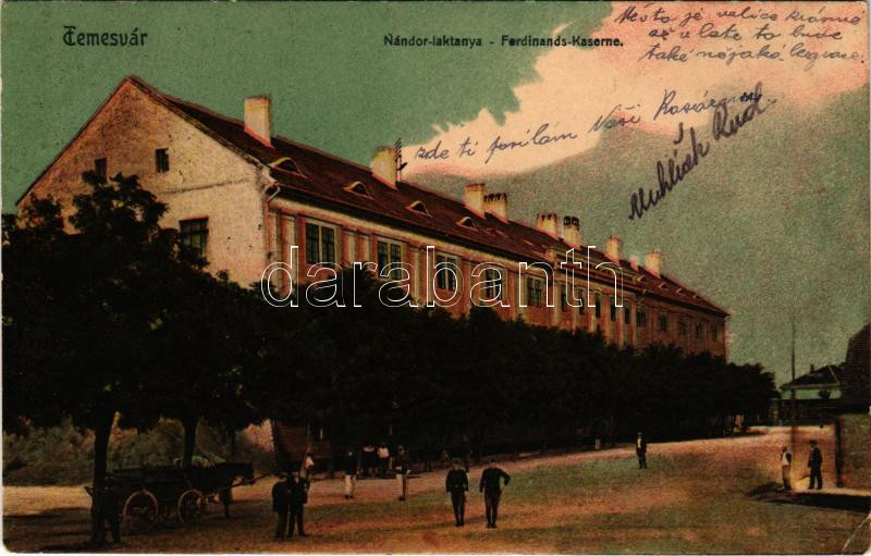 1913 Temesvár, Timisoara; Nándor laktanya / Ferdinands Kaserne / milit... https://www.darabanth.com/hu/473-Gyorsarveres/473.0/Kepeslapok/Erdely~2000007/1913-Temesvar-Timisoara-Nandor-laktanya-Ferdinands-Kaserne-military-barracks-EK~II3210999