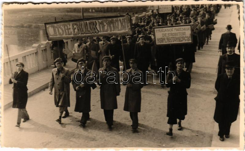 Leírás: Lugos, Lugoj (?); Manifestatia studenteasca pro maresal Antonescu / diáktüntetés Antonescu marsall mellett / student demonstration in favor of Marshal Antonescu. Gligu I. Valeriu photo (gyűrődés / crease)