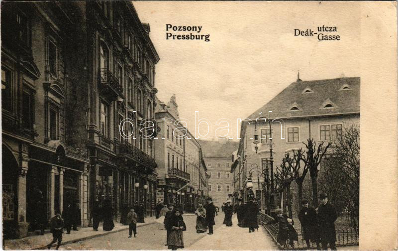 1907 Pozsony, Pressburg, Bratislava; Deák utca / street (EK) https://www.darabanth.com/hu/473-Gyorsarveres/473.0/Kepeslapok/Felvidek~2000008/1907-Pozsony-Pressburg-Bratislava-Deak-utca-street-EK~II3211891