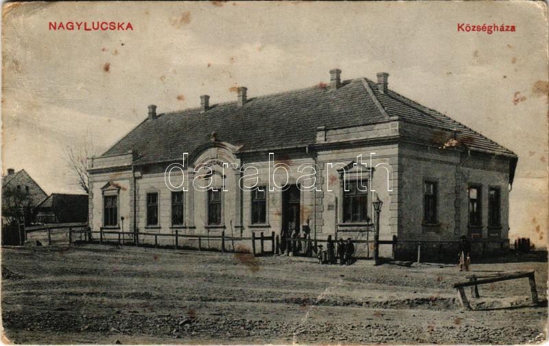 1911 Nagylucska, Velyki Luchky (Munkács); községháza / town hall (Rb) https://www.darabanth.com/hu/473-Gyorsarveres/473.0/Kepeslapok/Karpatalja~2000009/1911-Nagylucska-Velyki-Luchky-Munkacs-kozseghaza-town-hall-Rb~II3212169