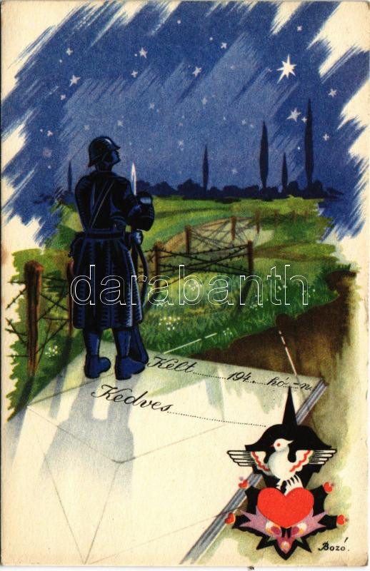Leírás: Magyar katonai művészlap / WWII Hungarian military art postcard s: Bozó (fa)