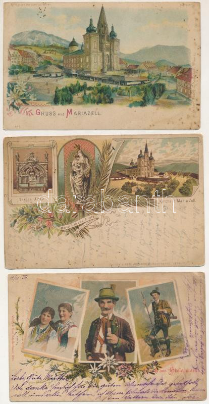 Leírás: 3 db RÉGI hosszú címzéses osztrák képeslap vegyes minőségben / 3 pre-1905 Austrian litho postcards in mixed quality: Mariazell, Steiermark