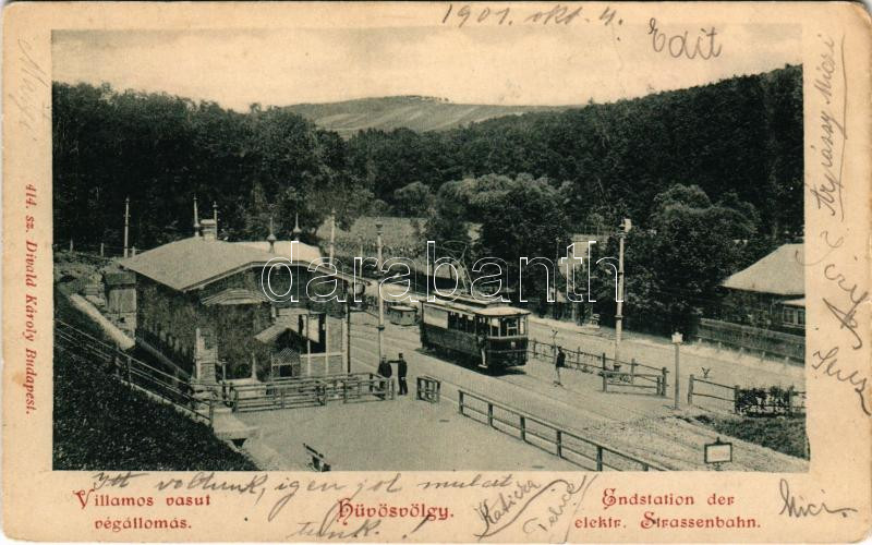 1901 Budapest II. Hűvösvölgy, villamos vasút végállomása. Divald Károl... https://www.darabanth.com/hu/473-Gyorsarveres/473.0/Kepeslapok/Magyarorszag~2000125/1901-Budapest-II-Huvosvolgy-villamos-vasut-vegallomasa-Divald-Karoly-414-sz-azott-w~II3203132