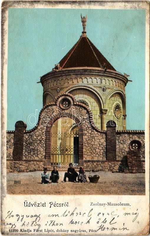 1904 Pécs, Zsolnay mauzóleum. Fürst Lipót kiadása (EB) https://www.darabanth.com/hu/473-Gyorsarveres/473.0/Kepeslapok/Magyarorszag~2000125/1904-Pecs-Zsolnay-mauzoleum-Furst-Lipot-kiadasa-EB~II2618643