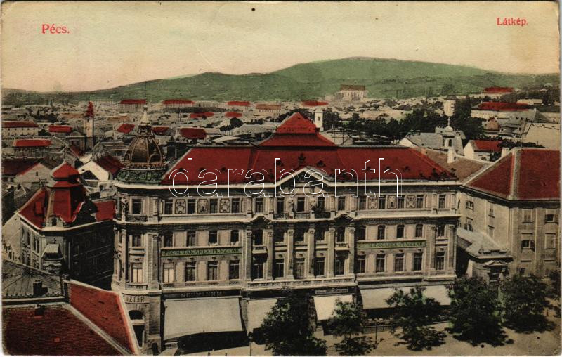 Leírás: 1913 Pécs, Takarékpénztár, Neumann M. üzlete (ázott sarok / wet corner)