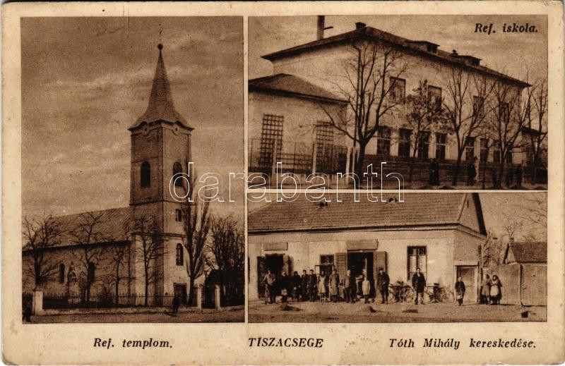 1944 Tiszacsege, Református templom és iskola, Tóth Mihály üzlete és s... https://www.darabanth.com/hu/473-Gyorsarveres/473.0/Kepeslapok/Magyarorszag~2000125/1944-Tiszacsege-Reformatus-templom-es-iskola-Toth-Mihaly-uzlete-es-sajat-kiadasa-EK~II3204700