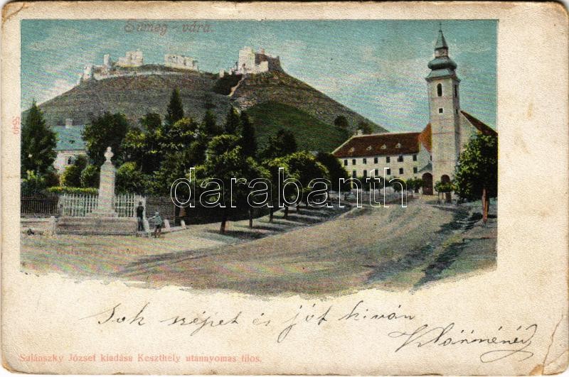 Leírás: Sümeg, Kisfaludy Sándor szobra, vár. Sujánszky József kiadása (EB)