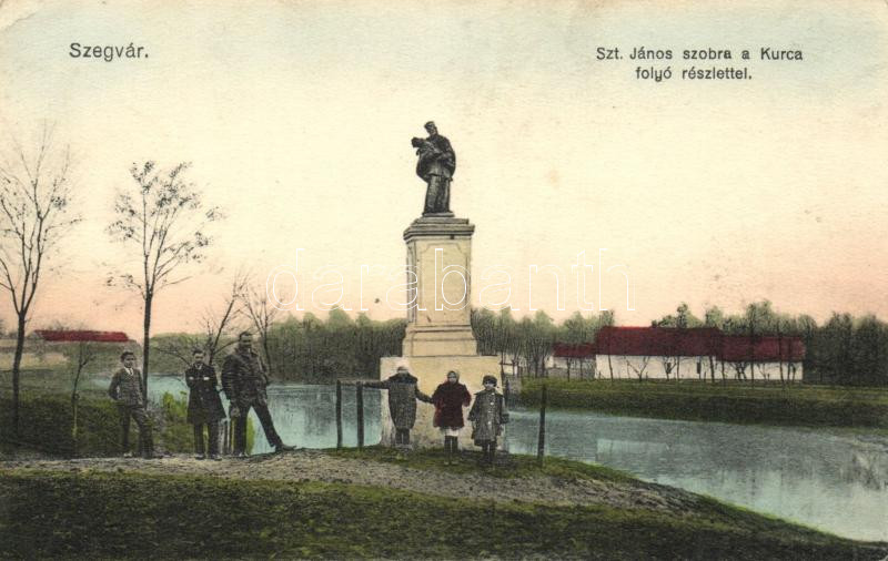 Leírás: Szegvár, Szent János szobor a Kurca folyóval (ázott / wet damage)