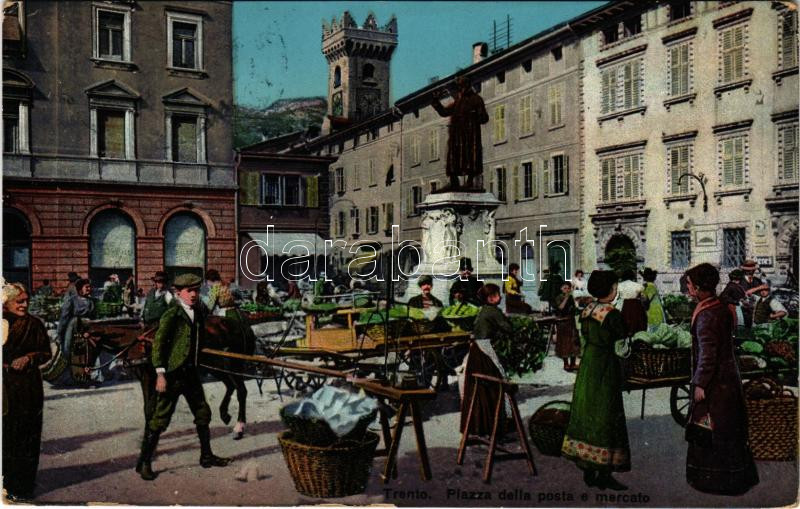 1916 Trento, Trient (Südtirol); Piazza della posta e mercato / market ... https://www.darabanth.com/hu/473-Gyorsarveres/473.0/Kepeslapok/Olaszorszag~2000108/1916-Trento-Trient-Sudtirol-Piazza-della-posta-e-mercato-market-EK~II3209054