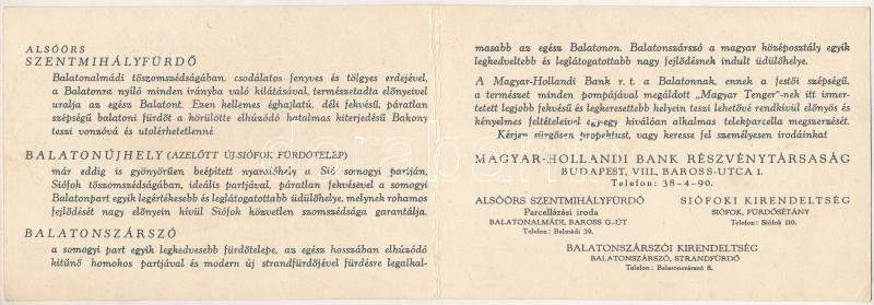 Tálcán hozzuk Önnek az egyetlen ideális vagyonszerzési lehetőséget! Alsóörs, Siófok és Balatonszárszó Parcellázási Iroda kinyitható reklámlapja. Magyar-Holland Bank Részvénytársaság / Hungarian-Dutch Bank folding adversiting postcard s: Győry (EK)