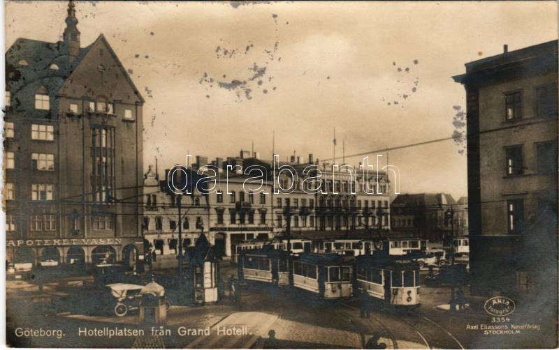 Göteborg, Gothenburg; Hotellplatsen fran Grand Hotell / square, hotel,... https://www.darabanth.com/hu/473-Gyorsarveres/473.0/Kepeslapok/Svedorszag~2000114/Goteborg-Gothenburg-Hotellplatsen-fran-Grand-Hotell-square-hotel-trams-pharmacy-fl~II3206076