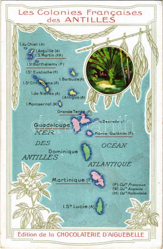 Leírás: Les Colonies Francaises des Antilles. Edition de la Chocolaterie d'Aiguebelle / French West Indies map (non PC) (EK)