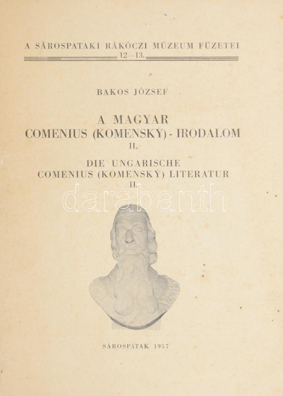 Bakos József: A magyar Comenius (Komensky)-irodalom II. Die Ungarische Comenius (Komensky) literatur II. Sárospataki Rákóczi Múzeum Füzetei 12-13. Sárospatak, 1957, (Borsodmegyei Nyomdaipari Vállalat-ny.), 64 p. Kiadói papÃrkötés. Megjelent 1200 példányban.