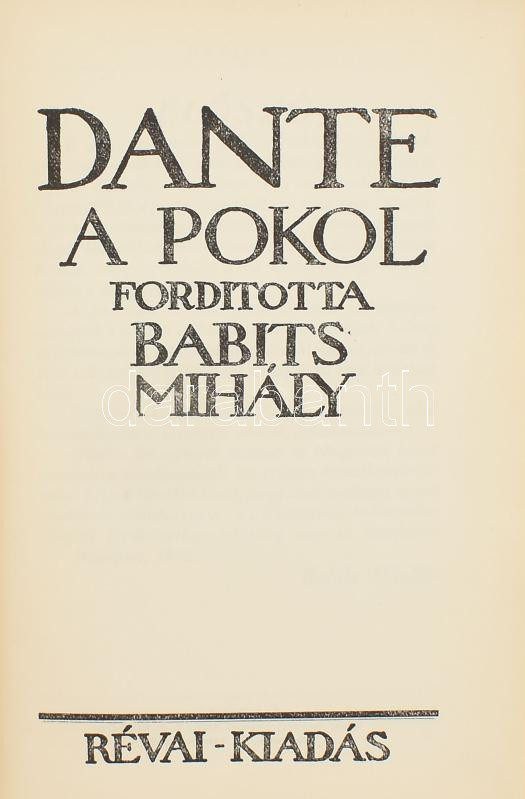 Dante: A pokol. Ford.: Babits Mihály. Dante komédiája 1. köt. Révai Kü... https://www.darabanth.com/hu/473-Gyorsarveres/473.0/Konyvek/Konyvek-Egyeb-ritkasagok~1000049/Dante-A-pokol-Ford-Babits-Mihaly-Dante-komediaja-1-kot-Revai-Kulfoldi-Mestermuvei-Bp~II3206116