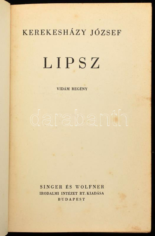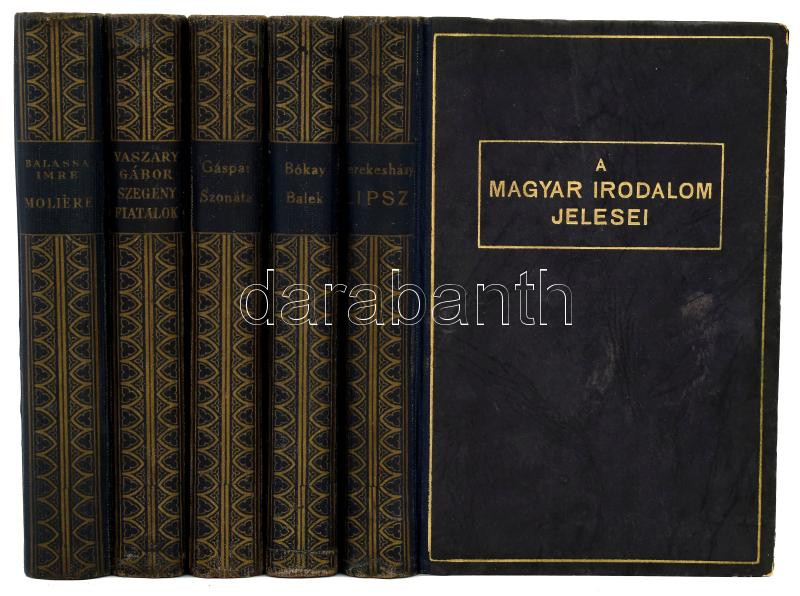 Leírás: Magyar Irodalom Jelesei sorozat 5 darab kötete. Kerekesházy József: Lipsz. Bókay János: A balek. Gáspár Jenő: Szonáta. Vaszary Gábor: Szegény fiatalok. Balassa Imre: Moliére. Bp., 1938-1940, Singer és Wolfner, néhol kopott félvászon kötésben.