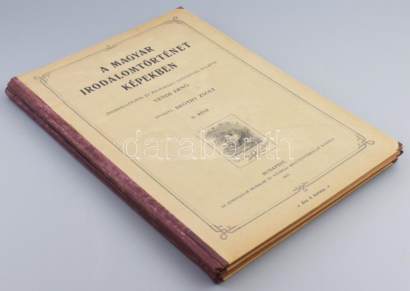 Leírás: Vende Ernő: A magyar irodalomtörténet képekben I-II. rész. Összeállította és magyarázó szöveggel ellátta - -. Átnézte: Beöthy Zsolt.