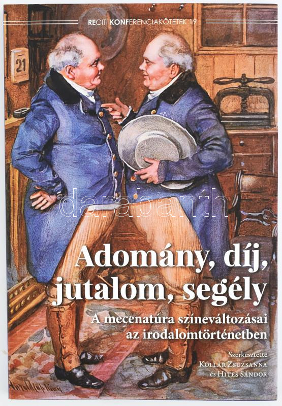 Leírás: Kollár Zsuzsanna, Hites Sándor: Adomány, díj, jutalom, segély. A mecenatúra színeváltozásai az irodalomtörténetben. Bp., 2022, Reciti, papírkötés.