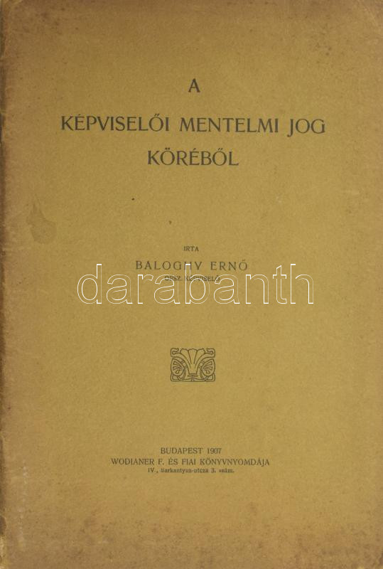 Beloghy Ernő: A képviselői mentelmi jog köréből. Bp., 1907, Wodianer. ... https://www.darabanth.com/hu/473-Gyorsarveres/473.0/Konyvek/Konyvek-Jog~1000039/Beloghy-Erno-A-kepviseloi-mentelmi-jog-korebol-Bp-1907-Wodianer-Kiadoi-papirkotes-k~II3213618