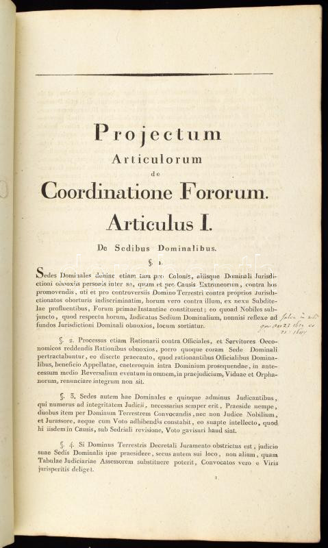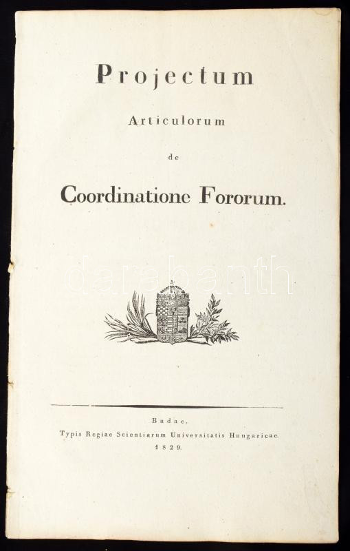 Leírás: Projectum articulorum de coordinatione fororum per regnicolarem juridicam deputationem articulo 67. 1791. ordinatam elaboratum. U. a. (II. 25 l.) Budae, 1829. Typis reg. scient. universit.