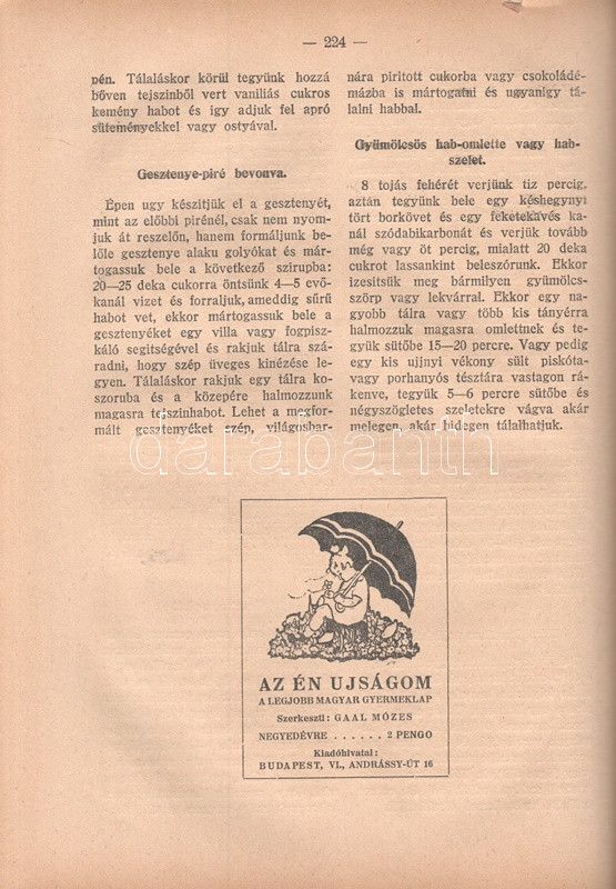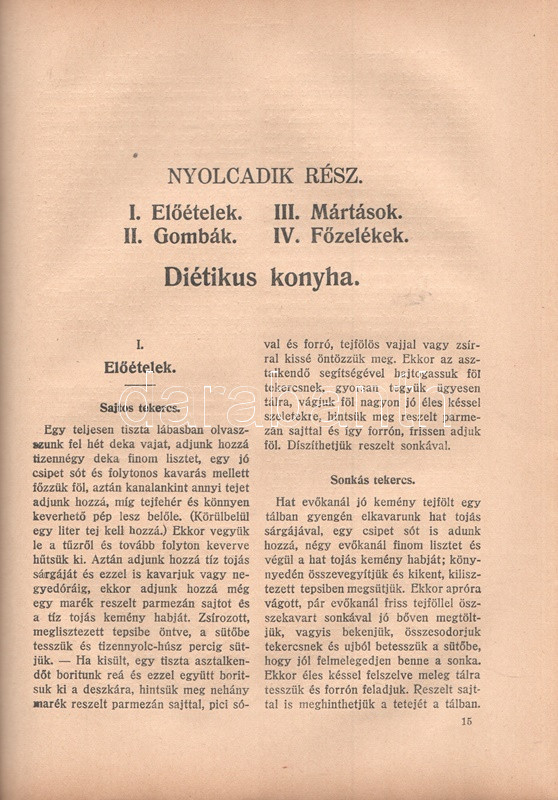 Hunyady Erzsébet gasztronómiai szerző ,,A jó konyha. Így kell főzni!" című receptsorozata eredetileg füzetes formában látott napvilágot, 1922-1933 között. A füzetes megjelenést 1924-ben követte a kötetformátum első kiadása. A magyar gasztronómia eljárásait és receptjeit tömörítő szakmunka egyes fejezetei között képes kiadói folyóirat- és szöveges könyvhirdetések. Az előzékeken régi kereskedői könyvjegy, illetve további kézírásos jegyzet.