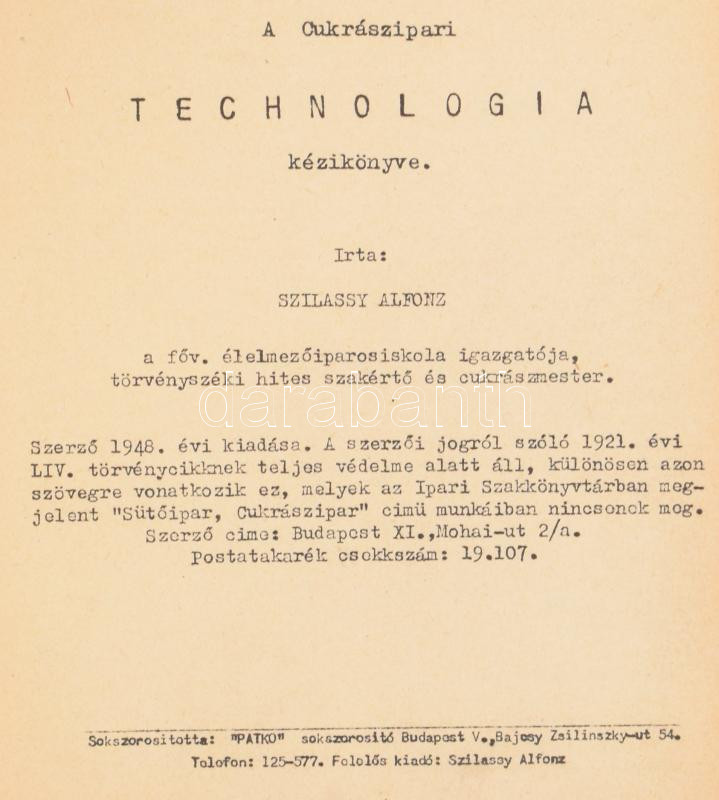 Szilassy Alfonz: A cukrászipari technológia kézikönyve. [Bp.], 1948, S... https://www.darabanth.com/hu/473-Gyorsarveres/473.0/Konyvek/Konyvek-Konyha-es-kert~1000023/Szilassy-Alfonz-A-cukraszipari-technologia-kezikonyve-Bp-1948-Szerzoi-Patko-ny-505~II3197713