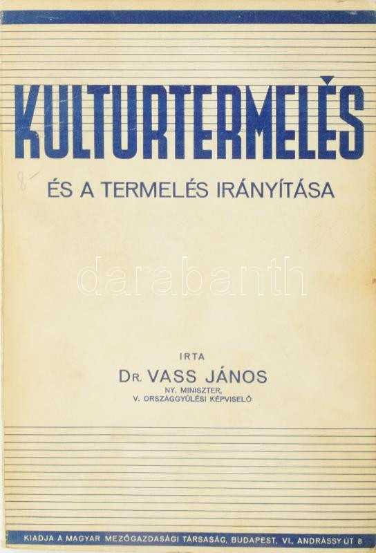 Vass János: Kultúrtermelés és a termelés irányítása. Bp., é.n., Magyar Mezőgazdasági Társaság. Kiadói papírkötés, borítón apró foltokkal, felvágatlan példány!