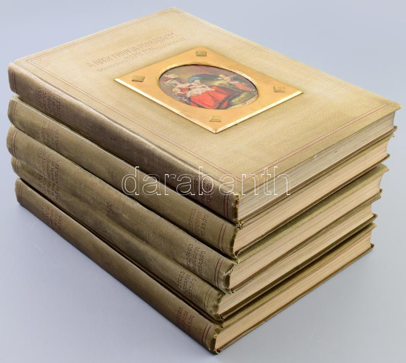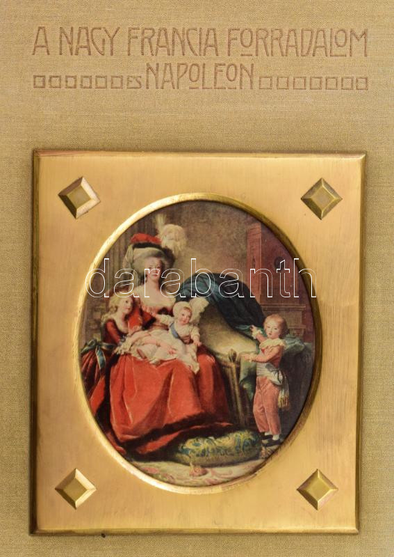 A nagy francia forradalom és Napóleon. I-V. kötet. Teljes!. Írták: Adorján Andor, Kéry Pál, Seress László és Zilahi Kiss Béla. Szerk. Borovszky Samu. Bp.,é. n. (1910 körül), Orsz. Monografia Társ. Szövegközti képanyaggal és önálló táblákkal gazdagon illusztrálva. Kiadói, aranyozott egészvászon-kötésben, Gottermayer-kötés, az elülső kötéstáblákon rézplakettbe foglalt színes képekkel, Megkímélt, jó állapotban