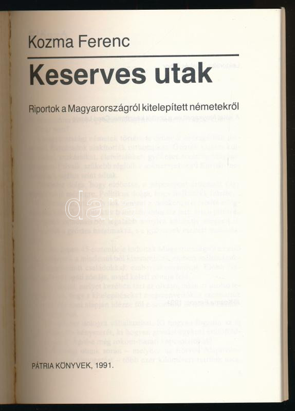 Kozma Ferenc: Keserves utak. Riportok a Magyarországról kitelepített n... https://www.darabanth.com/hu/473-Gyorsarveres/473.0/Konyvek/Konyvek-Tortenelem~1000040/Kozma-Ferenc-Keserves-utak-Riportok-a-Magyarorszagrol-kitelepitett-nemetekrol-1991-Patria~II3213151