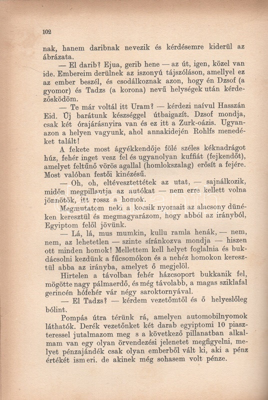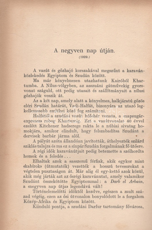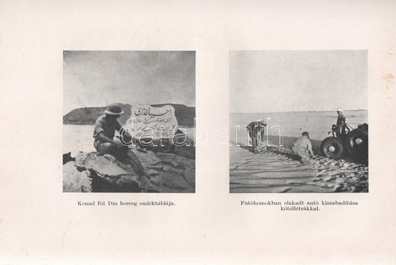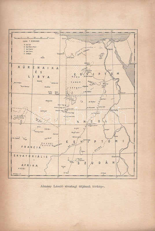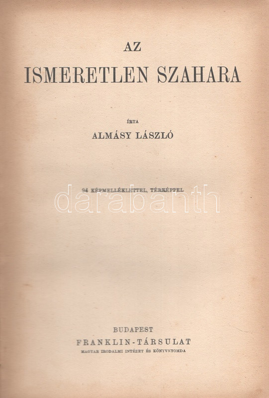 Almásy László 1929-1934 között megtett afrikai (szaharai) kutatóútjáról írt műve először 1934-ben jelent meg, a festett, aranyozott kötésváltozat kizárólag az első kiadás sajátja. Néhány oldalon enyhe foltosság.