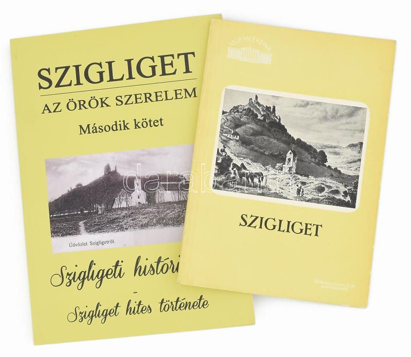 Kozák Károly: Szigliget. Műemlékeink. Bp., 1961, Képzőművészeti Alap. Kiadói papírkötés. + Szigligeti história I. Szigliget hites története. Szigliget - Az örök szerelem II. köt. Szerk.: Takács József, Szabó Tibor András, Balassa Dániel. Szigliget, 2015, Esterházy Pince Szigliget Kft. Kiadói papírkötés.